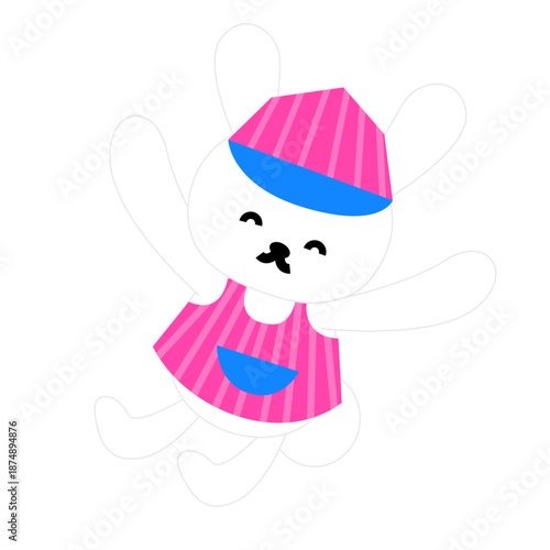 Animal skates. Bunny winter skater vector icon. Cute cartoon rabbit hare character ice figure skating isolated on white background. Doodle holiday card or new year, christmas postcard design