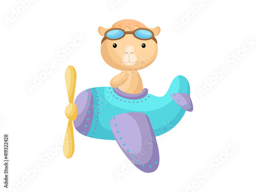 Bunny cute pilot animal cartoon vector icon. Funny rabbit hare character flying on airplane isolated on white background. Doodle design for postcard