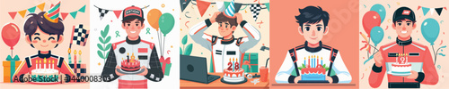 Man in chef hat burgermaker holding huge burger with meat patty, tomatoes, egg, lettuce, cheese and ketchup, vector flat illustration. Burger house concept for web banner, website page etc.