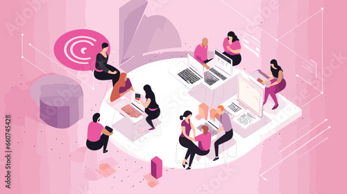 Business analysis and planning. Concept top view vector illustration. Business people sitting at a table. Office meeting, team work, project management, financial report and strategy, office desk.