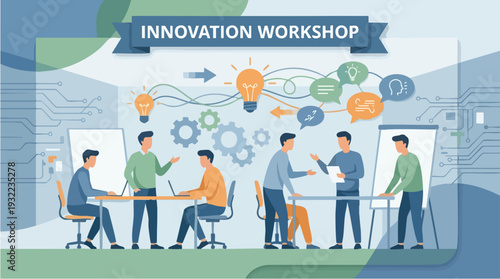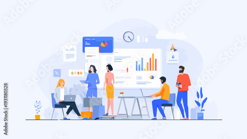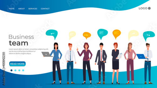 Business analysis landing page website template. Vector illustration Group of business people discussing financial report at workshop meeting.