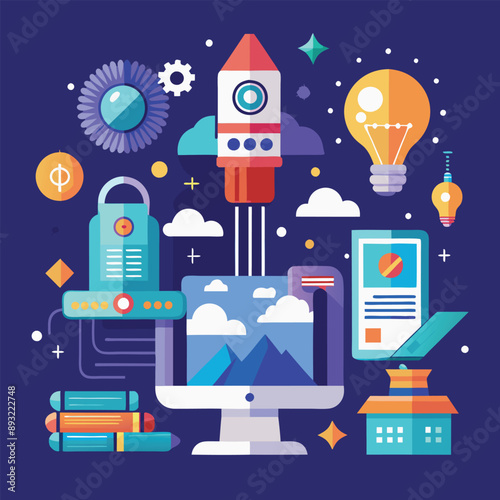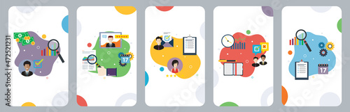 Business analyst vector flat illustration. Tablet with dashboard, target, calculator, lamp, award cup, clipboard with checklist, marks. Business analysis services concept for web banner, website page.
