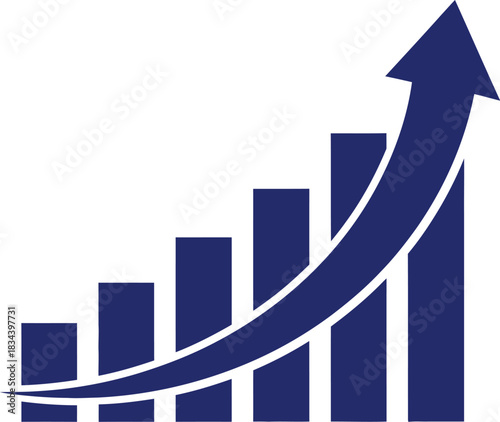 Graph growth vector. Business chart bar and arrow up icon. Diagram of success and graphic of profit, financial progress. Isometric infographic isolated on white background