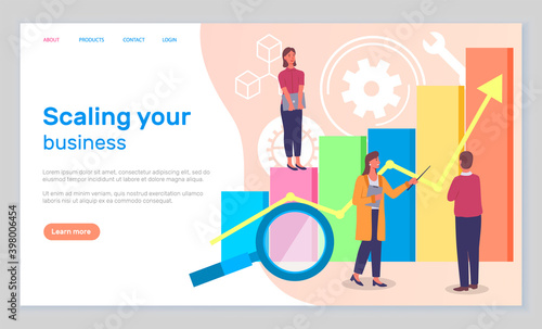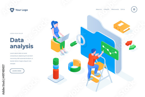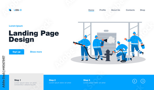 Business closure vector website template, landing page design for website and mobile site development. Stressed out employees in front of chained up factory building. Business arrest.