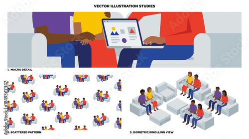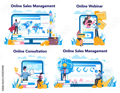 Business team collaboration and communication scene set, flat vector isolated illustration. Team video call chat, remote teamwork, partnership.