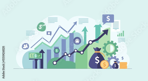 Business commitment to reduce carbon emission and limit global warming to 1.5 degree celsius. Green economy and environment, vector illustration. Businessman invest money to sustainable business.