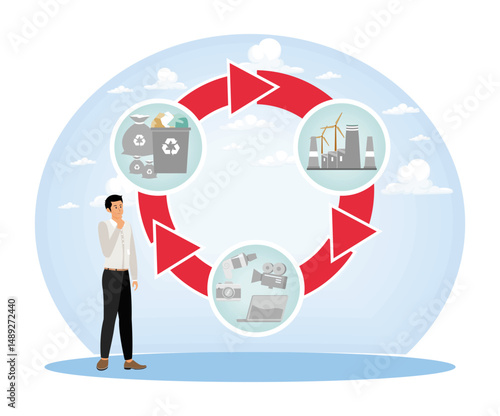 Businessman walking up staircase to trophy cup, vector illustration in paper art style. Financial success, growth, leadership, business journey, challenge, way to success concept.