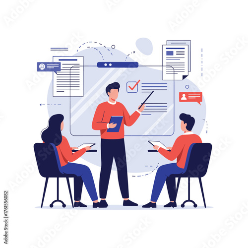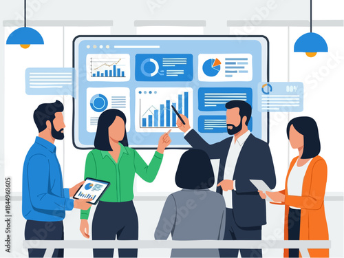 Business consultant, audit professionals analysing data, flat vector illustration. Financial statement or annual report, financial audit and advisory services. Finance and accounting.
