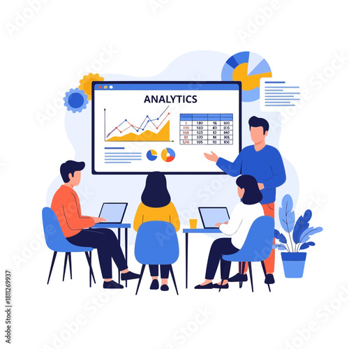 Business consultant, audit professionals analysing data, flat vector illustration. Financial statement or annual report, financial audit and advisory services. Finance and accounting.