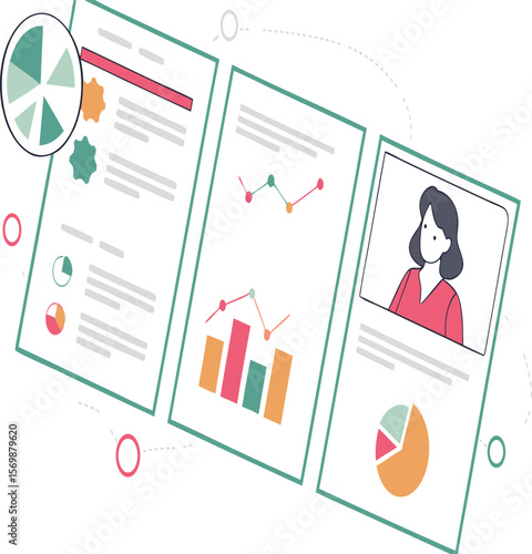 Business data analysis in chart and graph vector icon. Digital research, finance web report, seo information