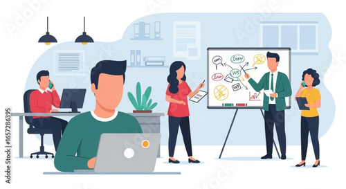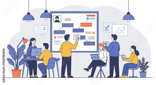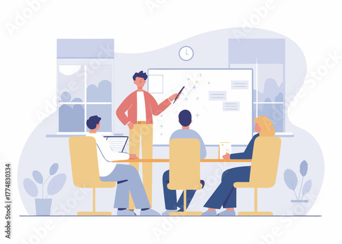 Business deal concept. Two businessmen conclude agreement and shake hands. Office environment. Vector web site design template. Landing page website concept illustration.