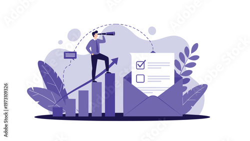 Business development and strategy concept. Hard work to growth business. Businessman with a new idea. Vector web site design template. Landing page website concept illustration.