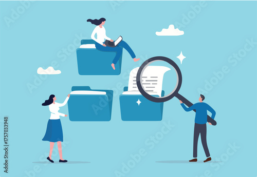 Business people reading company rules, flat vector illustration. Business laws and regulations, ethical practice, compliance policy and procedures.
