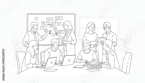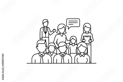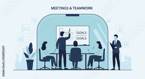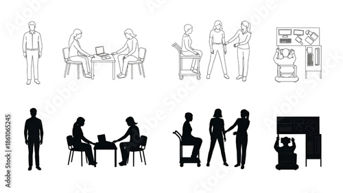 Group of business people silhouettes having meeting, discussion, brainstorming while sitting at table, vector illustration in paper art craft style. Business office concept for banner, website page.