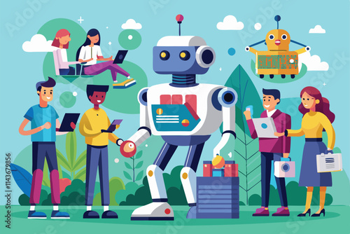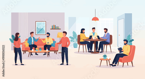 Business people climbing up stairs, flat vector illustration. Self growth and personal development, career ladder, reach target, teamwork.