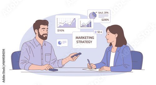 Business people, clipboard with checklist, clock. Woman checking to do list, man showing ok hand sign, flat vector illustration. Task management, planning, time management.