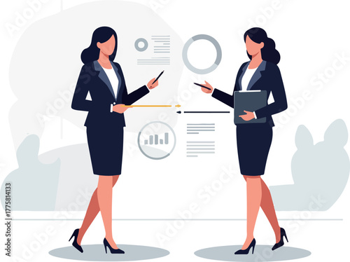 Vector illustration of smiling man and woman colleagues standing with arms crossed. Business people flat style design elements, icons isolated on white background.