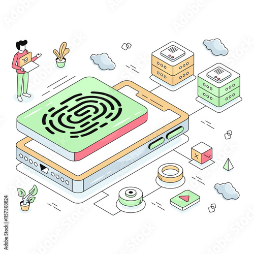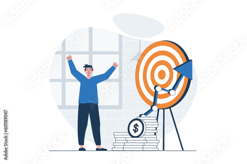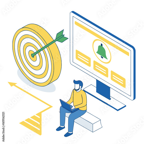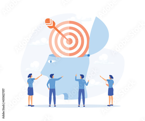 Business people connecting target pieces together, flat vector isometric illustration. Team work, collaboration, partnership.