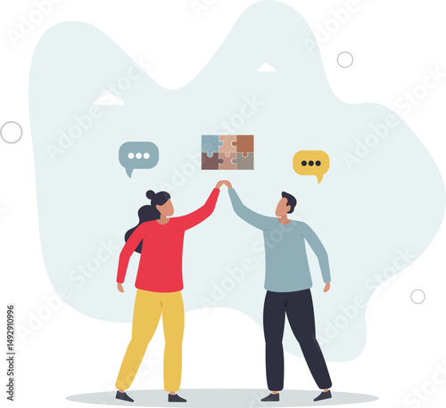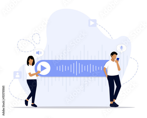 Business people in VR glasses touching virtual reality interface, flat vector illustration. VR education, simulation. Virtual reality technology.