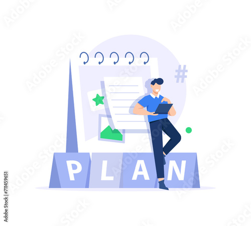 Office people, vector flat style design illustration isolated on white background. Business people working and taking rest in office.