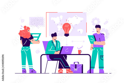 Business people shaking hands, flat vector illustration. Businessman and businesswoman making deal, successful business sales. Handshake.