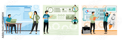Business people smoke in office smoking area. Smoking concept vector posters set. Teen guy walk on a street and smokes vape. Electronic cigarettes, vaper, hand with cigarette, isolated objects.
