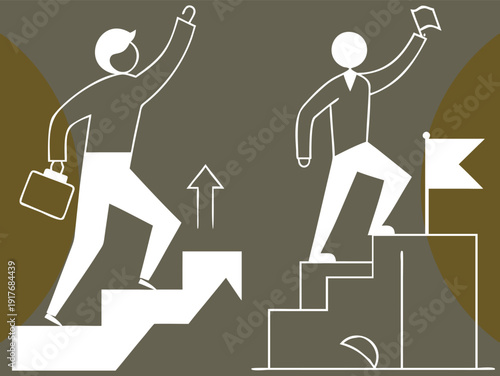 Business people team silhouettes climbing up stairs helping each other to money bag on the top, vector illustration. Teamwork, leadership, business goal, path to financial success.