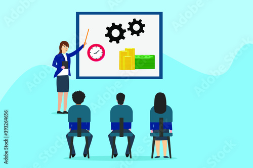 Business people team work, flat vector isolated illustration. Group of office people working together. Cooperation, agile teamwork.