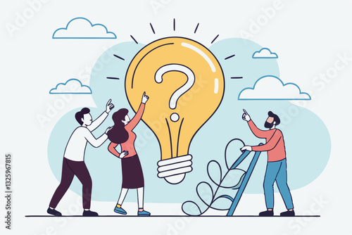 Tiny characters business people with mobile phone, speech bubble in front of huge keyhole, flat vector illustration. Business opportunities concept.