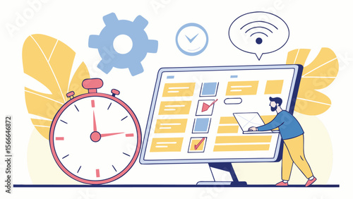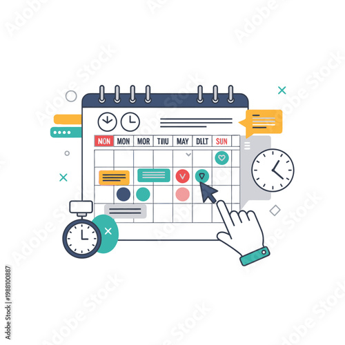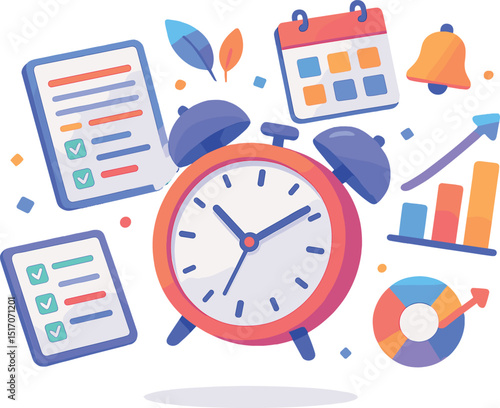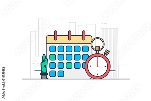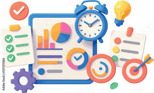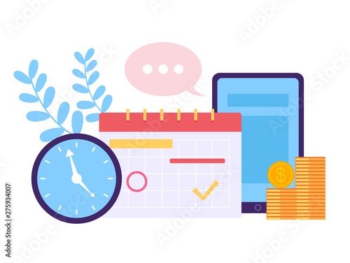 Business plan, time management and schedule vector. Planning project tasks, managing work and finance marketing 3d illustration. Efficiency, success and profit concept