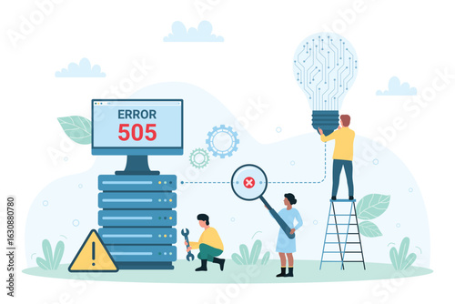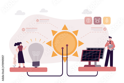 Business project startup, tiny people investing money in new creative idea, flat vector illustration. Startup investment, innovation, business team work.