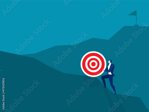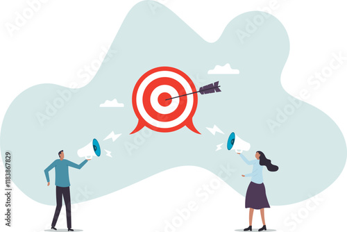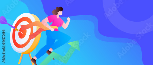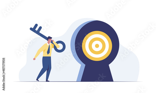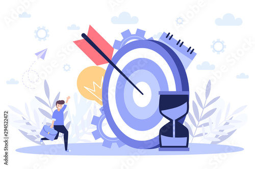 Business project startup rocket launch, flat vector illustration. Target, people with light bulb, money, riding rocket. Targeting, marketing, business idea creation, teamwork, financial investment