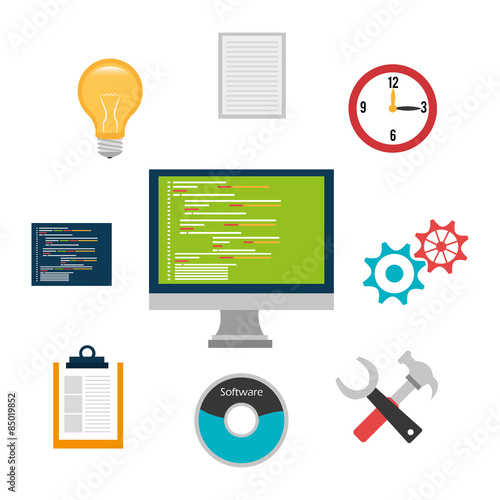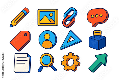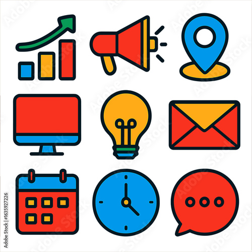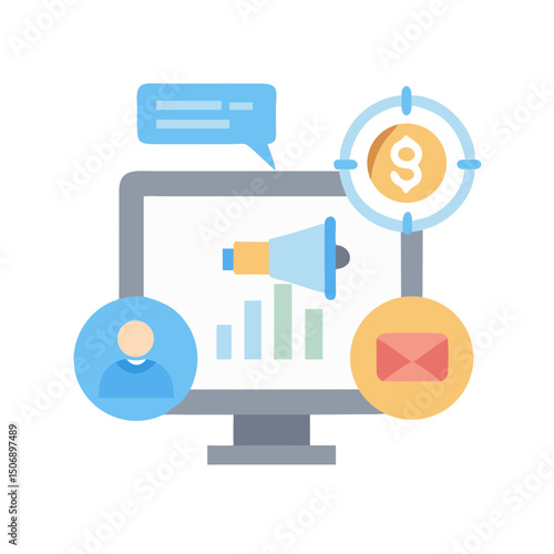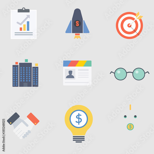 Business project startup vector 3d icon design illustration. Rocket shop, idea lightbulb, graph chart bar, arrow, message chat speech bubble, loupe, credit card, money symbol, target aim dartboard