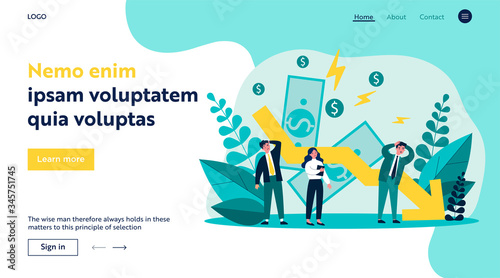 Business solution landing page website template. Vector flat illustration of business people professional team building solution word jigsaw puzzles.