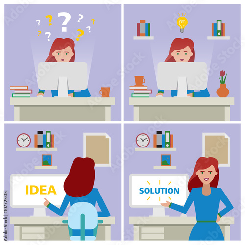 Business startup, new project launch cartoon character set, flat vector isolated illustration. People starting new business, analysing data.