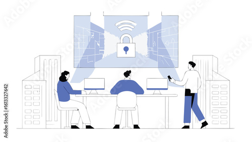 Vector illustration of two businessmen choosing the right path at guide post using map and gps. Business strategy concept flat style design.