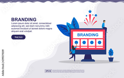 Business strategy plan and financial report concept. Teamwork, computer, technology. Vector web site design template. Landing page website concept illustration.