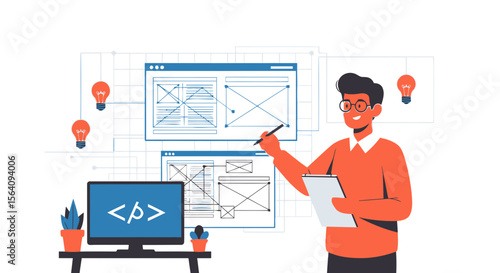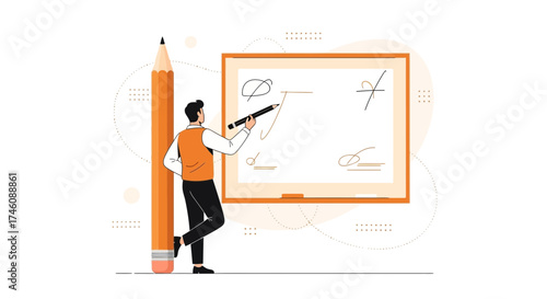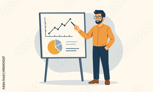 Businessman drawing growing arrow schedule leading to winner award cup, vector flat illustration isolated on white background. Business success, planning strategy concept for web banner, website page.