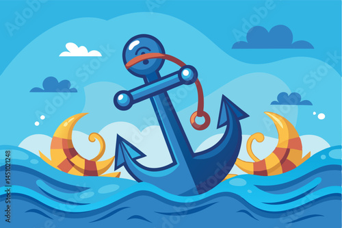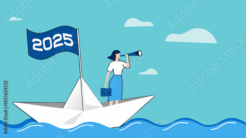 Business success concept vector poster in paper art origami style. Businessman surfing on a top of the wave. Sea waves and clouds paper cut.