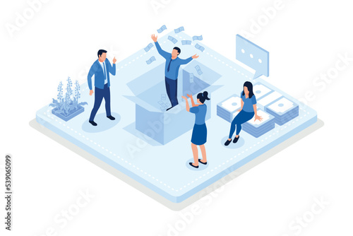 Business woman balancing work, career and family, flat vector isometric illustration. Work and life balance concept.