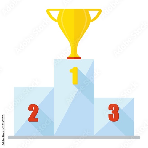 Business word ladder with trophy award cup on top. Vector realistic illustration. Business success concept for web, poster, banner.