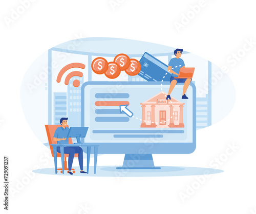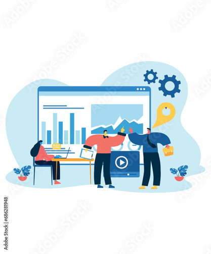 Business man attracting potential customers with magnet, flat vector illustration. Targeting, digital marketing campaign, customer retention, inbound marketing.