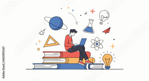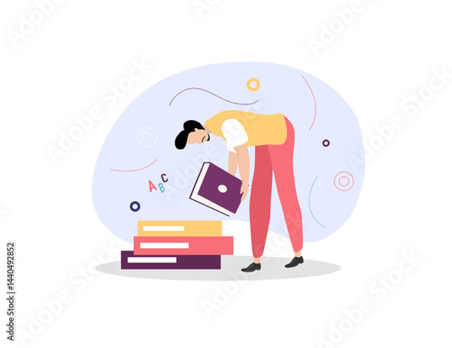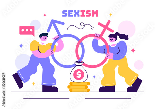 Businessman being late to work, business woman with laptop sitting on huge hourglass. Vector flat illustration. Time management, deadline, lack of time concept.