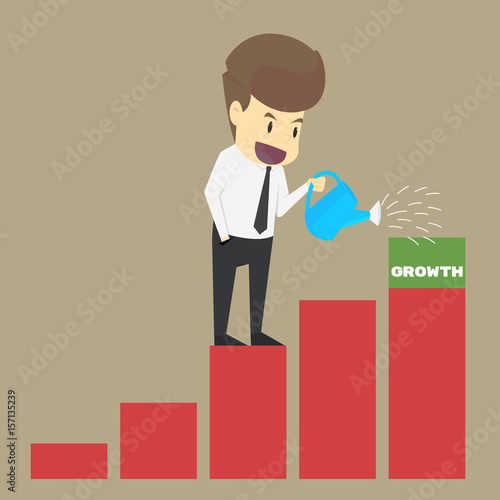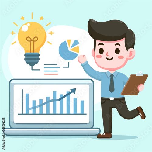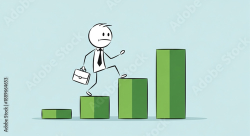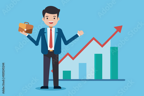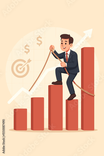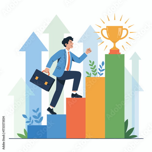 Businessman climbing ladder to success. Goal achievement. Motivation and goal concept to be successful in business and life. Vector illustration in flat design.
