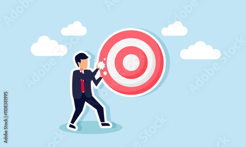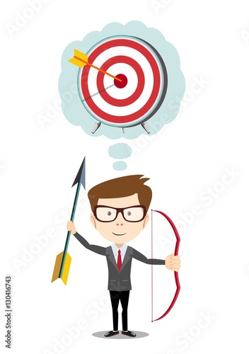 Businessman climbing ladder to success. Goal achievement. Motivation and goal concept to be successful in business and life. Vector illustration in flat design.