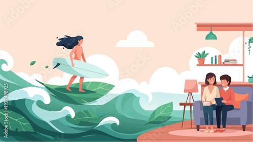 Businessman dreamer reaching for rainbow, flat vector illustration. Office man dreaming about business career, goal achievements, financial success, leadership.