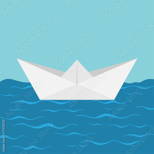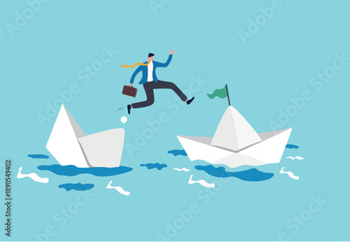 Businessman escape from sinking paper ship vector illustration. Business and bailout from bankruptcy concept