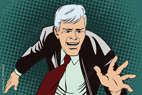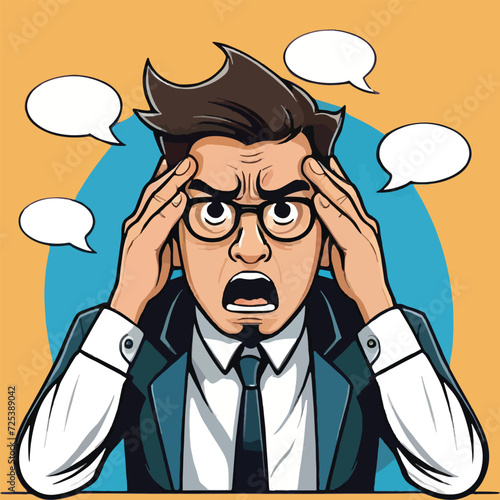 Businessman in panic of the financial crisis or business failure. Vector illustration in pop art retro style. Man with speech bubble.