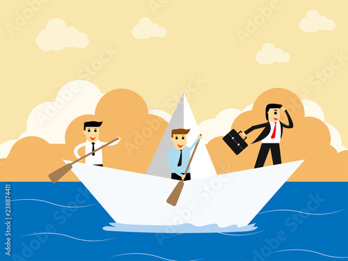 High rate taxes burden vector. Businessman in sinking paper boat in water due to heavy taxes kettlebell illustration. Taxpayer problem, bankruptcy and financial crisis concept