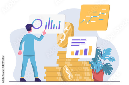 Businessman investing in gold bars, flat vector isometric illustration. Financial investment concept.